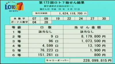 第173回ロト7当選速報