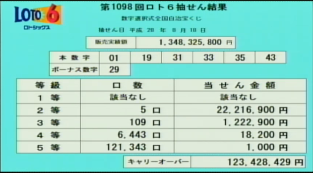 夜7時からロト6の速報をします
