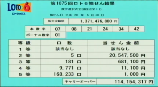 第1075回ロト6当選速報