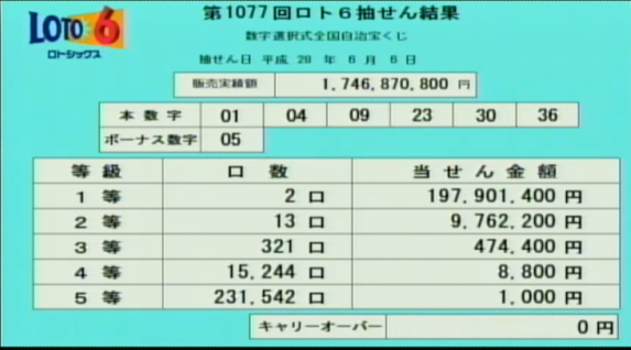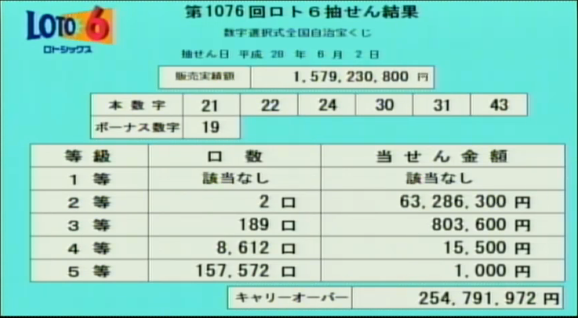 午後7時からロト6の速報をします