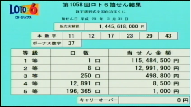 第1058回ロト6当選速報