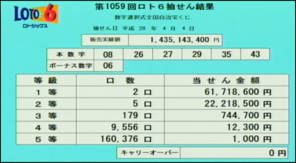ロト6の速報をします