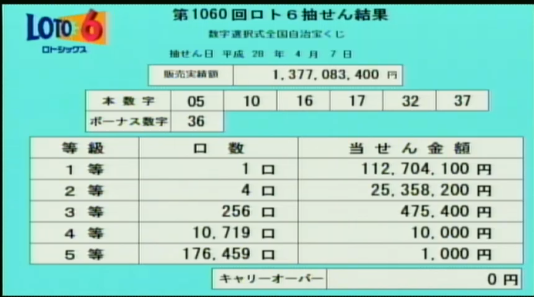 第1060回ロト6当選速報