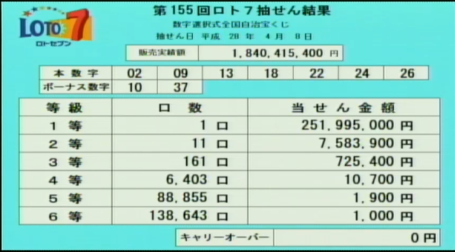 第155回ロト7当選速報
