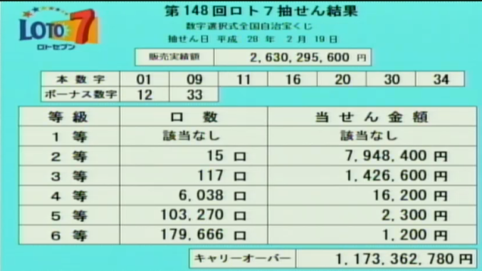 ロト7の速報をします