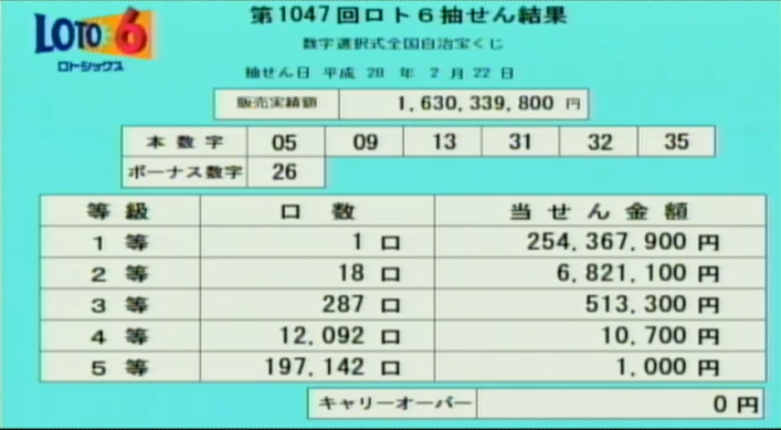第1047回ロト6当選速報