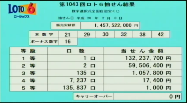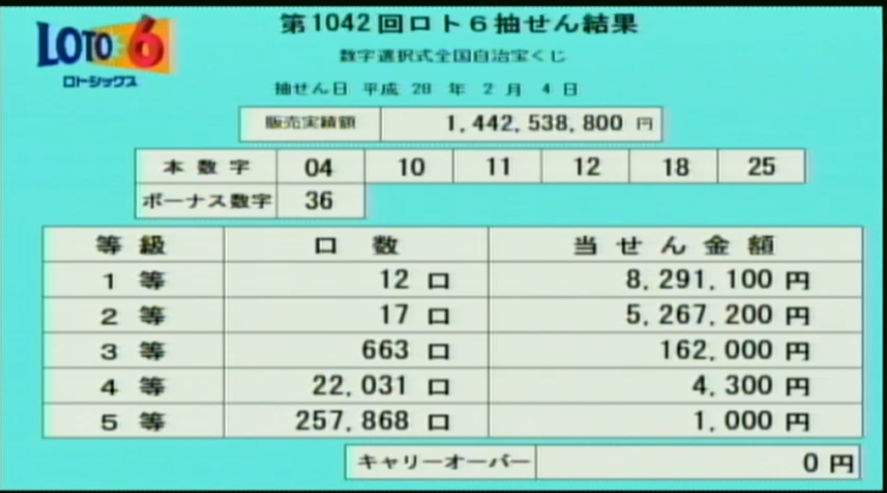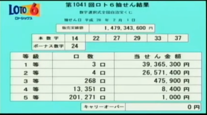 ロト6当選速報をします