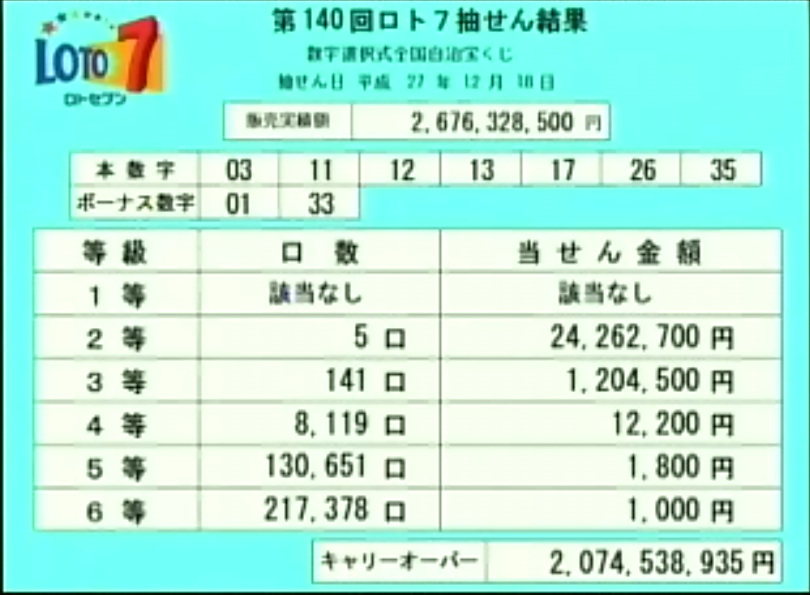 第140回ロト7当選速報