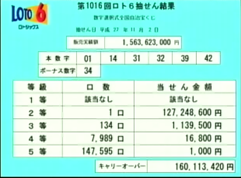 ロト6の速報をします