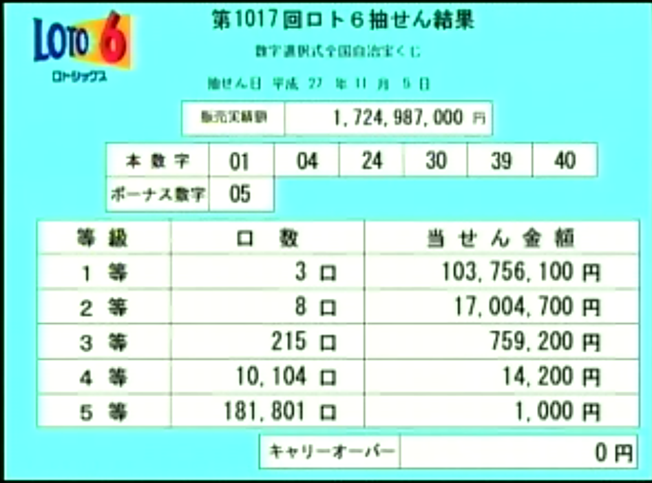 第1017回ロト6当選速報