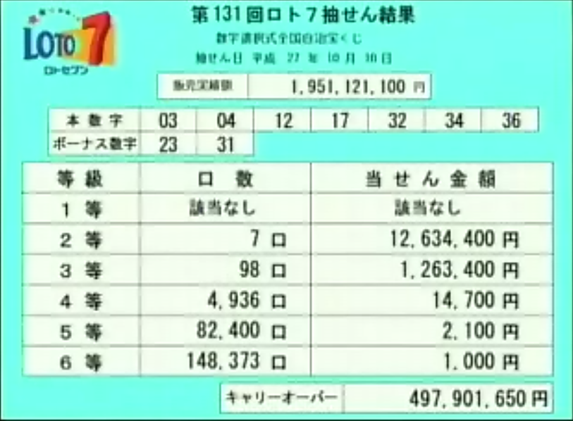 第131回ロト7当選速報