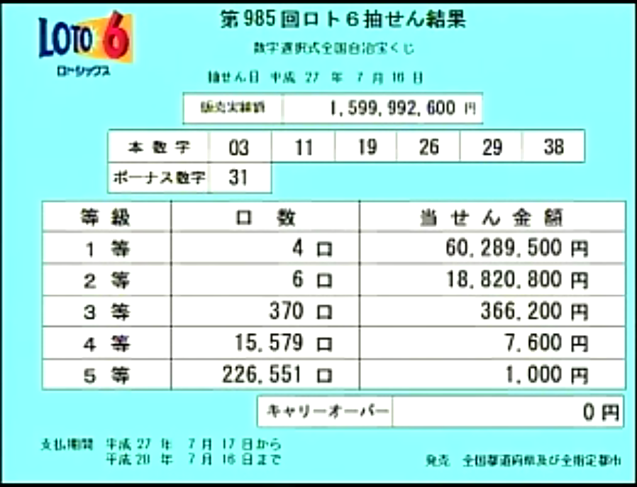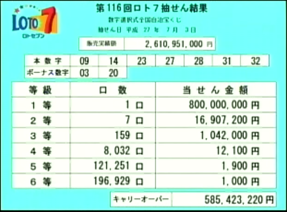 次回は明日金曜日夜7時より、ロト7の速報をします、