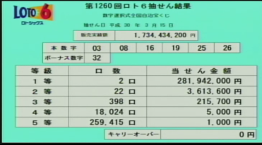 第1260回ロト6当選速報