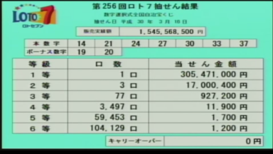 第256回ロト7当選速報