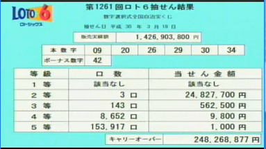 第1261回ロト6当選速報
