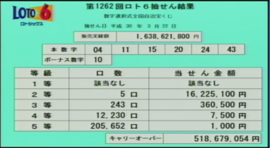 第1262回ロト6当選速報