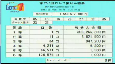 午後7時からロト7の速報をします