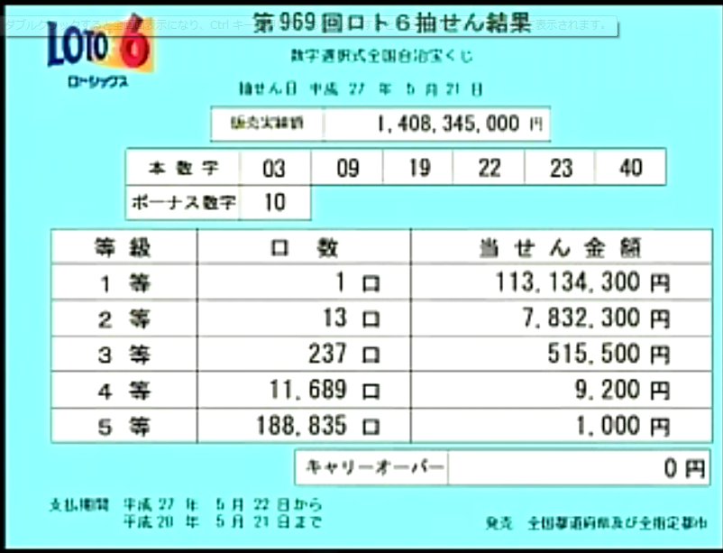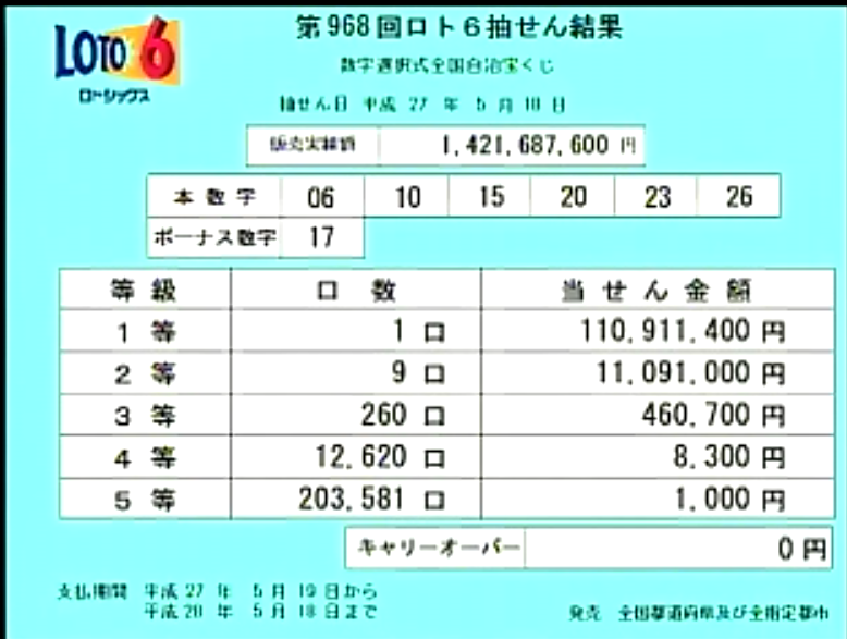 第970回ロト6当選速報