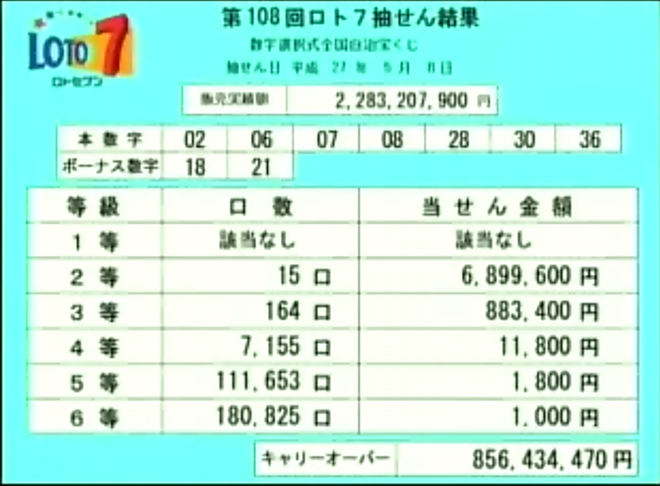 第108回ロト7当選速報