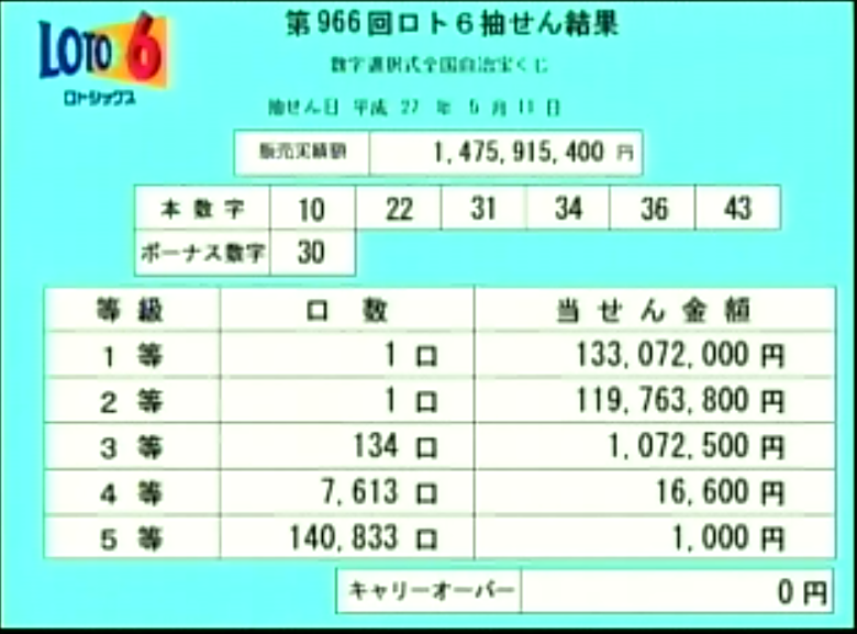 第966回ロト6当選速報