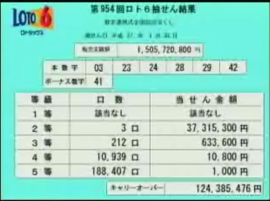 第954回ロト6当選速報
