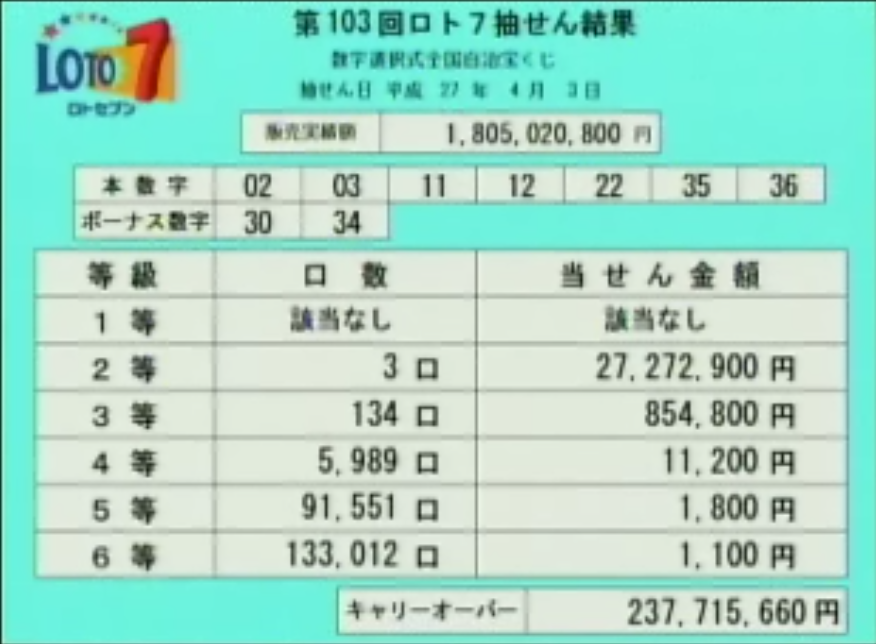 第103回ロト7当選速報